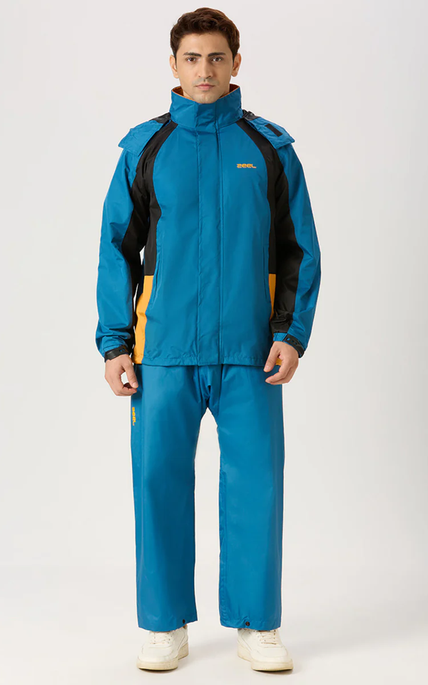 - ELASTIC WAISTBAND: Zeel Raincoats Suits are Designed with an elastic waistband, these rain pants secure you in place and make it comfortable to wear whereas the top jacket comes with a hood to provide complete protection to your head against rain.